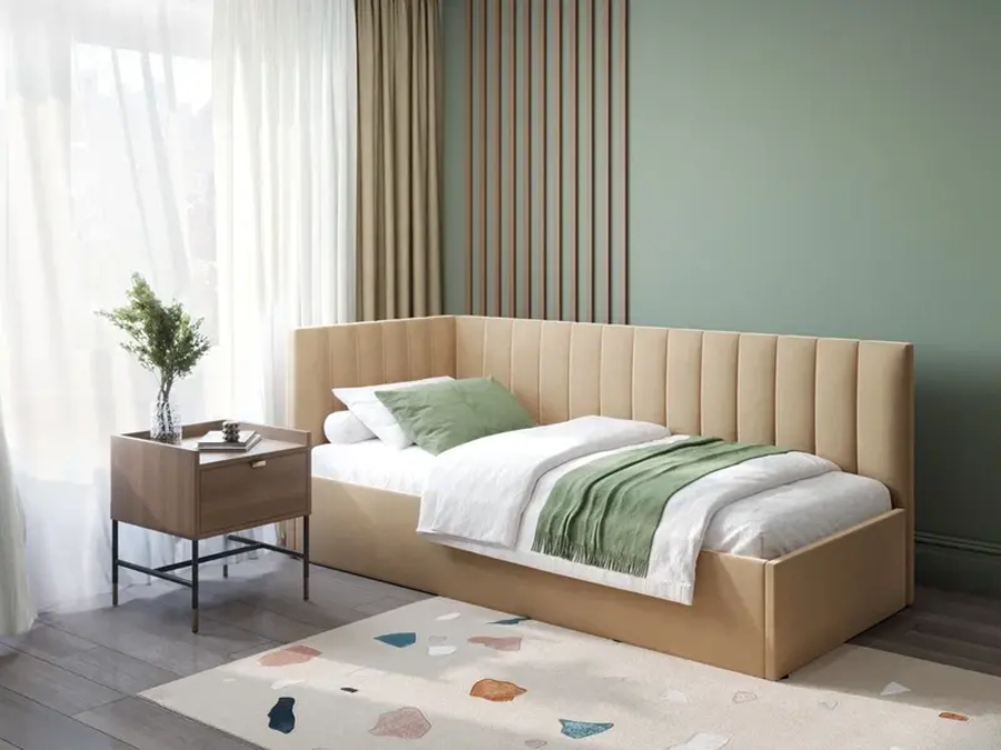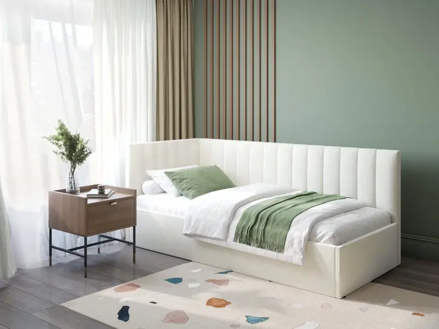 Подростковая кровать-диван сочетает компактность и функциональность — днем это уютный диван, а ночью полноценное спальное место. Такие модели рассчитаны на активное использование и часто имеют съёмные чехлы или крепкую тканевую обивку.