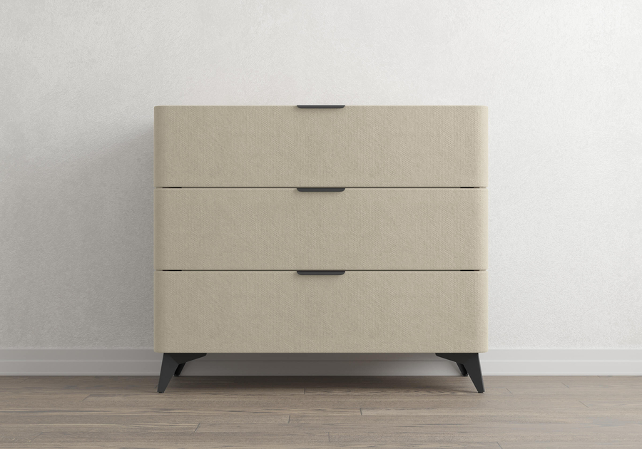 Sheldon - комод, который выделяется не за счёт громкой формы, а за счёт точных деталей. Мягкий корпус в сочетании со столешницей из ЛДСП "Дуб Сонома", изящные металлические ручки и высокие чёрные ножки - всё это работает вместе, создавая образ дорогой мебели. Три ящика на скрытых направляющих с доводчиками закрываются без хлопка и не выпадают при случайном толчке.