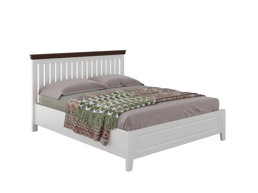 Главным украшением кровати из массива цвета белая эмаль является декоративная планка изголовья в контрастном цвете.